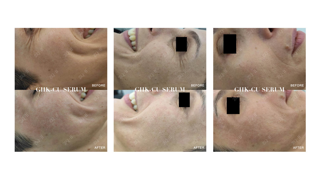 Vaskpeptiidid on nagu nahahoolduse autoritasu. Nad kinnitavad, parandavad ja kaitsevad, andes teile selle erksa, noorusliku kuma. Muidugi, need on investeering, kuid nad on seda väärt. Saksa klient koges pärast läbimist märkimisväärset naha paranemistZQ-II GHK-CU seerumrakendatakse 0,5 mm mikronüükeraga. Vahetud tulemused näitasid silmnähtavalt kindlamat, sujuvamat nahka koos peenete joonte ja kortsude märgatava vähenemisega, nagu nähtub enne ja pärast seda. Kui soovite kogeda vask -peptiidide võlu,ZQ-II GHK-CU seerumon teie ülim valik nähtavalt noorendatud ja erksa naha saavutamiseks.